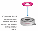 Capteurs de force à une composante Ces capteurs sont généralement en forme d'anneau et sont constitués de rondelles de quartz sensibles à la pression, prises en sandwich entre deux anneaux d'acier. | |