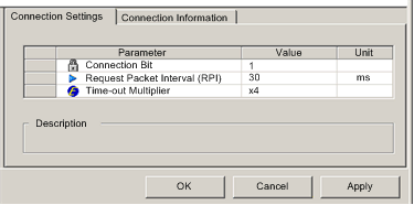 The refresh period for this connection. Accept the value of 30 ms. (This parameter can be set in the DTM for the communication module or the remote device.)