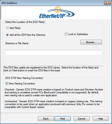 NOTE: To keep backward compatibility with Control Expert versions, unchecked the New Naming Convention check box and the naming rule is based on Model Name / Product Name. |