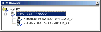 NOTE: Connecting or disconnecting a DTM to or from its device does not also connect or disconnect Control Expert to or from the PLC. DTMs can be connected/disconnected while Control Expert is either offline or online. |