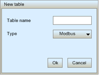 toolbar button. The New table dialog opens: