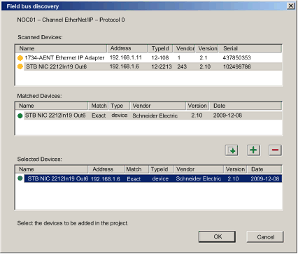 After you have selected the devices you want to add in the Field Bus Discovery dialog, click OK.