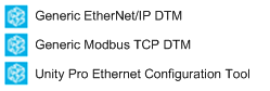 Repeat step 4 for each of the remaining 2 DTMs: Generic Modbus DTM and Control Expert Ethernet Configuration Tool.