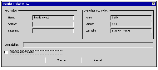 Note: In the event that the project is transferred to a Flash Eprom memory card, the transfer can take several minutes.