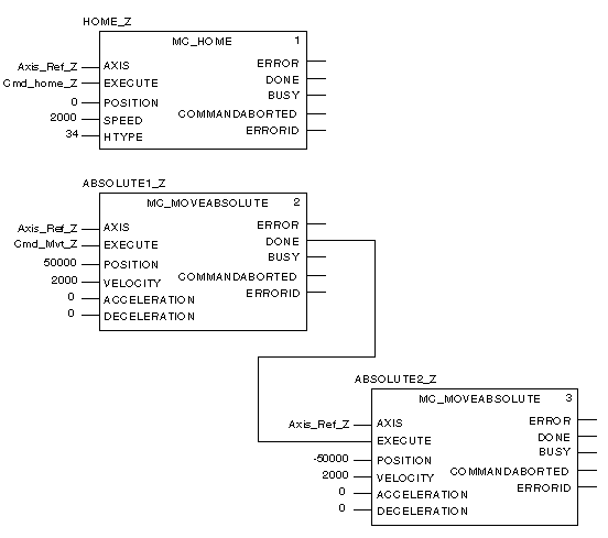 MC_HOME, which allows a homing reference point to be set for the axis before then launching it in absolute motion
