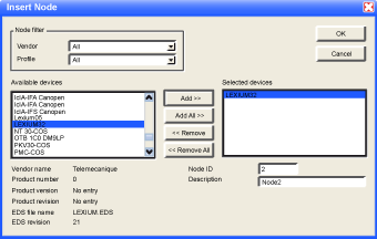 Click on the Add button to insert Node2 in the list of devices selected. Click on OK.