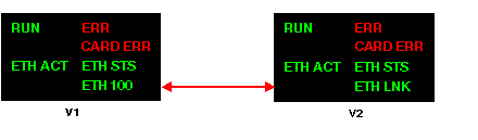 ETH ACT (green): Ethernet communication (transmission/reception) activity