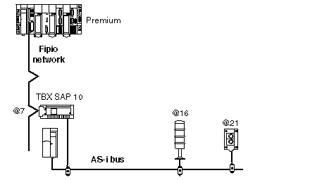 %Q\7.16\0.0.2 indicates: output 2 from the AS-i slave 16 illuminated column of a TBX SAP 10 module at address 7 on the Fipio bus.