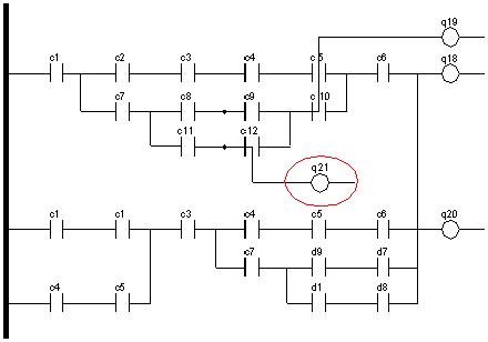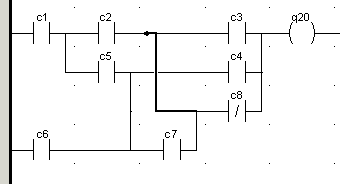 If an object (contact or coils) has a vertical connection (OR Link), this vertical connection will be located at the end of the cell of the object.