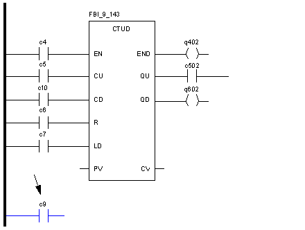In Control Expert, the contact c9 would automatically be connected with INPUT PV because both cells directly border in Concept.
