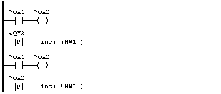 Concept: Switch %QX1 from 0 -> 1 and the value of %MW1 and %MW2 increase.