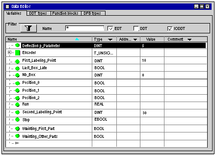 In Project browser / Variables & FB instances, double-click on Elementary variables