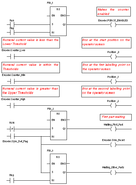 . Click on the Function and Function Block Types tab. Click on Libset and select the RS block in the list then confirm with OK and position your block. To link the Encoder.Sync_Ref_Flag contact to the S Rnput of the RS block, align the contact and the input horizontally, click on and position the link between the contact and the input. |