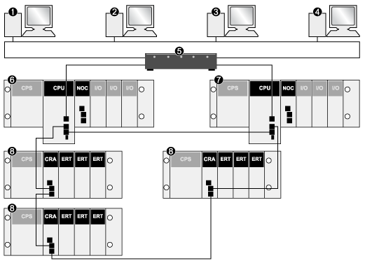 two modules between remote racks (with BMECRA31210 modules)