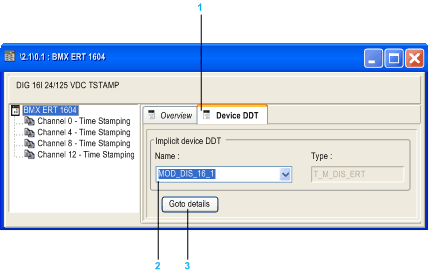 The following figure shows the Device DDT tab for the BMXERT1604T/H module: