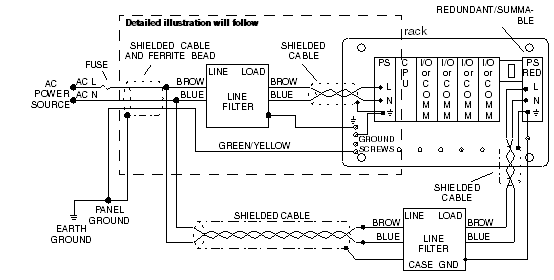 Terminate the shield at panel ground; the filter end of the shield is not terminated.
