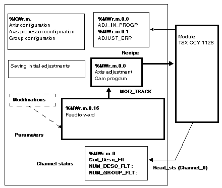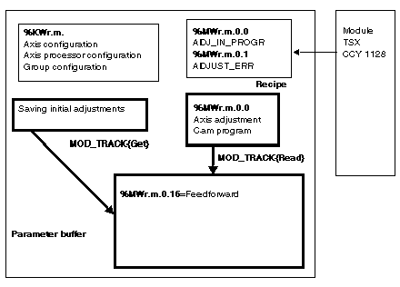The MOD_TRACK function is used to adjust a dynamically. Transferring new data does not require the to switch to STOP. If the transfer is successful, the new parameters are taken into account by the module. If the transfer is not successful, the cam processor remains in RUN with the old values.