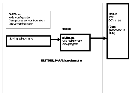 The recipe groups together the data required for the module to control the machine for a series of parts. The recipe can be modified or completely changed by the PLC application. All this information is contained in the PLC %MW words in the memory zone reserved for the module.