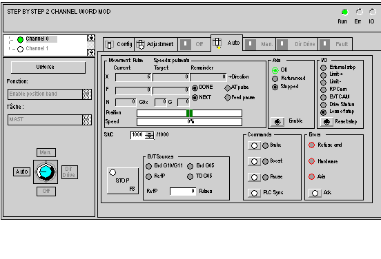 Axes control, being integrated into the Control Expert program, uses the Control Expert debug functions.