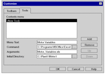 In the field, enter the name of the file to be opened (e.g. Motor_Variables.xls). |