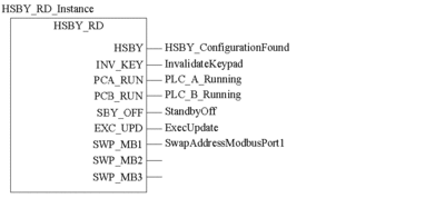 This EFB allows you to use the Hot Standby function. It searches (together with the other Hot Standby EFBs) the configuration of the respective Quantum PLC for the required components.