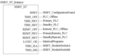 This EFB allows you to use the Hot Standby function. It searches (together with the other Hot Standby EFBs) the configuration of the respective Quantum PLC for the required components.