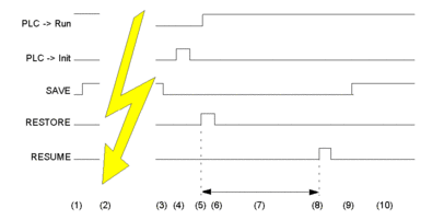 5 Set RESTORE input and PLC -> Run.