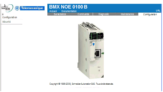 Page de configuration du BMX NOE 0100
