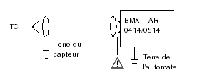 si les capteurs sont référencés par rapport à la terre des capteurs, laquelle est éloignée de la terre de l'automate, tous les blindages des câbles des capteurs doivent être référencés par rapport à la terre des capteurs pour éliminer la boucle de mise à la terre.