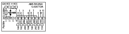 Plusieurs bornes reliées à la polarité "-" (3, 4, 200, 202 et 203) permettent de réaliser des communs par groupe de 4 ou 2 voies (sorties à logique positive).