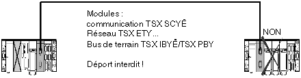 NOTE : une extension est interdite pour les modules de communication TSX SCY •••/TSX ETY•••/TSX IBY •••/TSX PBY •••. Ces modules doivent être situés sur le segment principal du bus X1