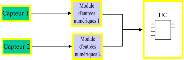 La figure suivante illustre la configuration de modules d'entrée numérique redondants :