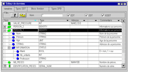 Exemple : affichage de l'instance Person_1 du type de structure IDENTITY.