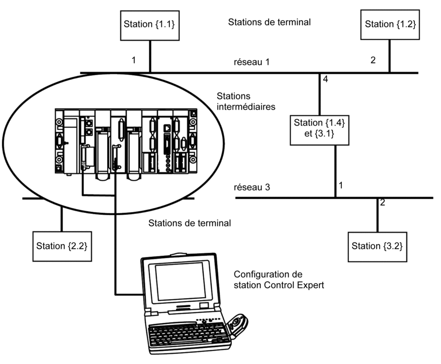 Dans une station intermédiaire, la gestion de plusieurs coupleurs réseau requiert une phase de configuration destinée à la distribution des caractéristiques fonctionnelles aux diverses entités de réseau.