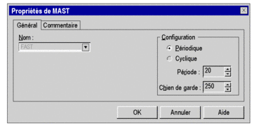 Dans le navigateur de projet, double-cliquez sur le répertoire programme. Le répertoire MAST (ainsi que FAST et AUX s'ils ont été créés) apparait sous le répertoire Tâches |