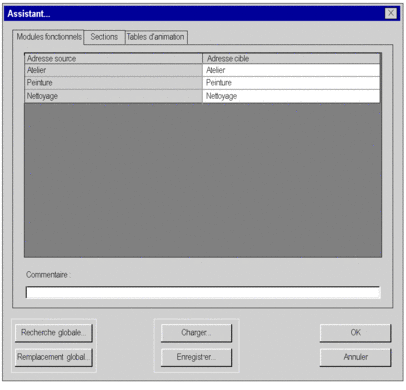 Commentaire permet de modifier le commentaire associé au module fonctionnel sélectionné. Ce commentaire écrit sur une seule ligne peut contenir 1024 caractères au maximum.