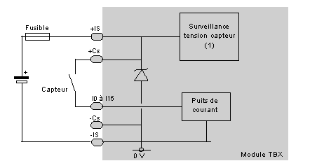 L'illustration suivante montre le schéma de principe d'une entrée à puits de courant.