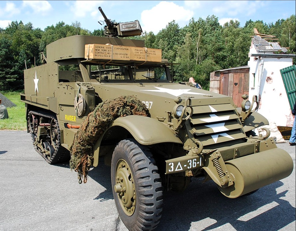 Tijdens de Tweede Wereldoorlog vond het vervoer van infanteristen naar en op het gevechtsveld voornamelijk plaats met vrachtauto’s, jeeps en andere wielvoertuigen. Of ze reden mee op tanks, zoals op de foto met Britse infanteristen achter op een Sherman tank. Zij waren altijd volledig onbeschermd tegen vijandelijk vuur.