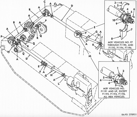 De M59 had twee GMC-zescilinder benzine lijnmotoren, één links- en één rechtsachter in de romp. Er gingen twee cardanassen naar voren. Er was een voorziening die ervoor zorgde dat beide motoren evenveel kracht leverden. De gehele aandrijflijn was echter storingsgevoelig en niet snel. Van 1953 tot 1960 werden er ruim 6.000 stuks geproduceerd.