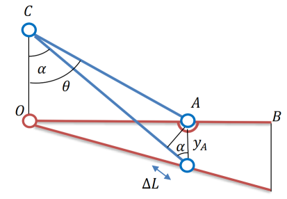 \(y_{A}=\frac{\Delta L}{\cos\alpha}=\frac{L'\Delta L}{h}\)