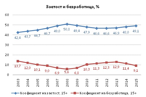 Паралелно с увеличената заетост в икономиката през 2015 г. се наблюдават други два положителни процеса – намаление както на безработицата, така и на икономическата неактивност.