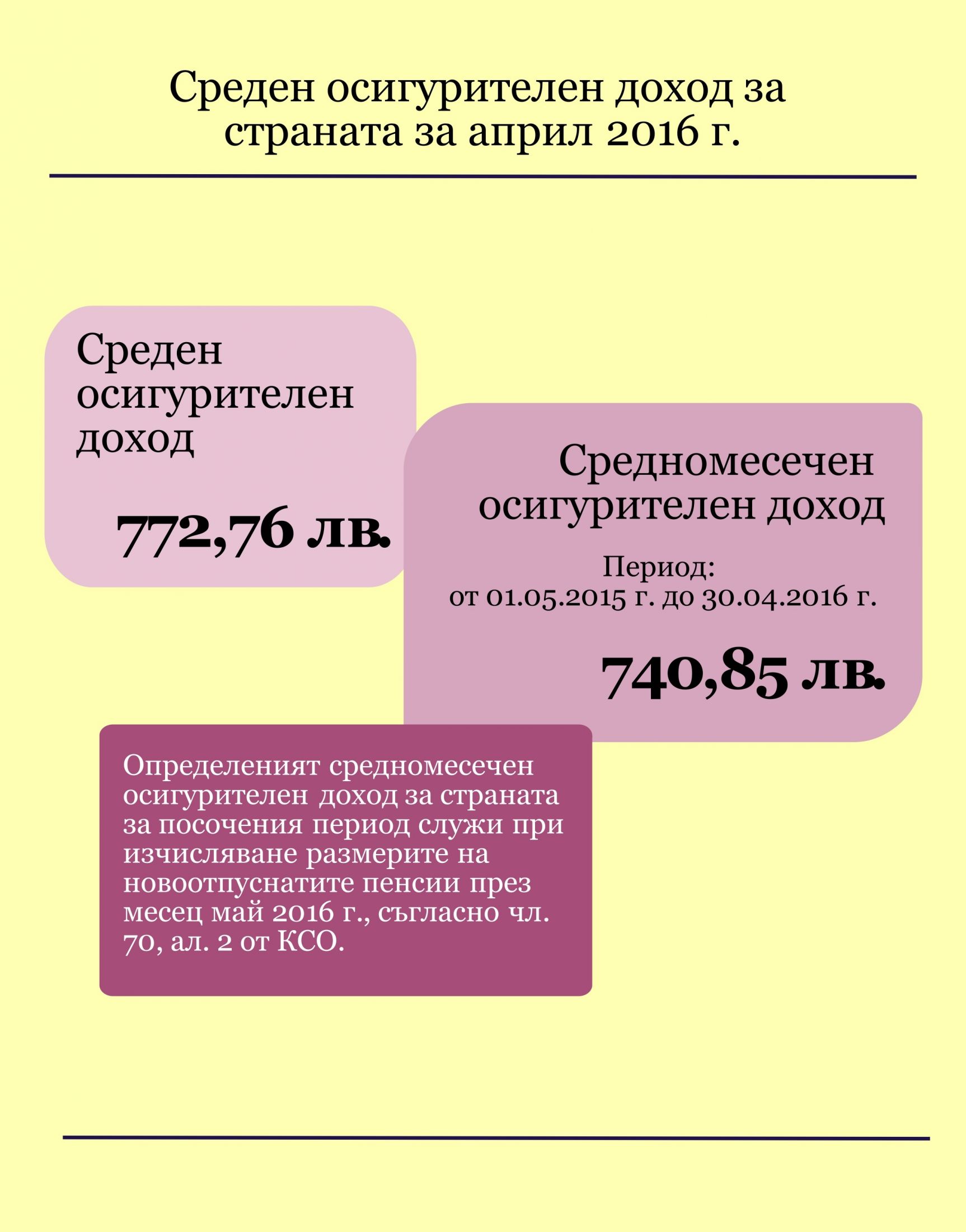 Среден осигурителен доход за страната за април 2016 г.