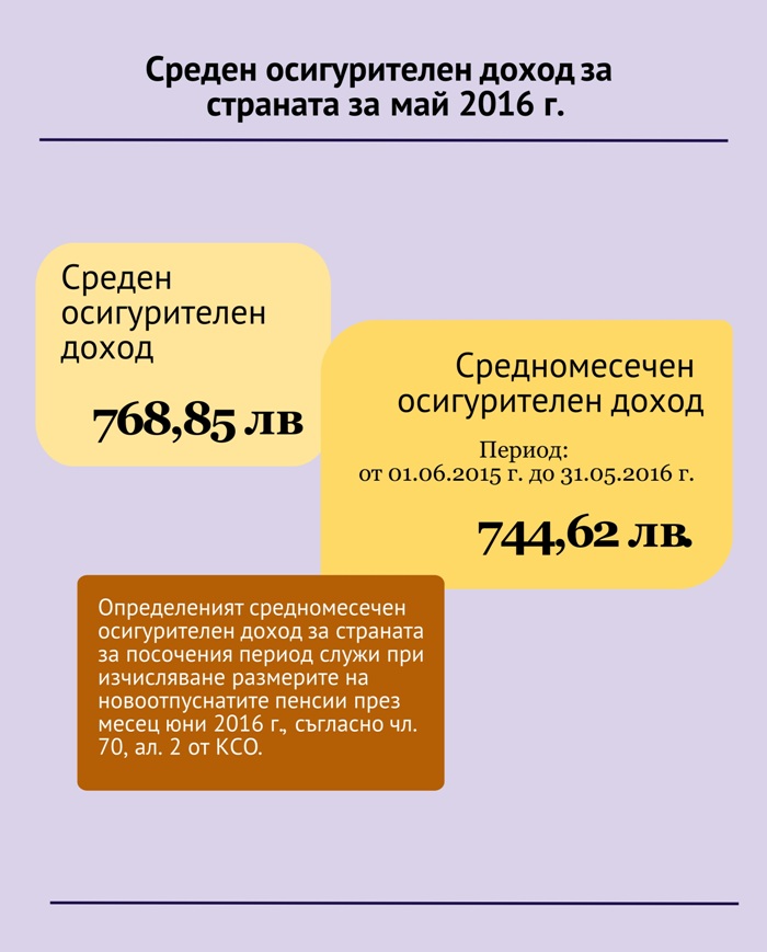 Среден осигурителен доход за страната за май 2016 г.