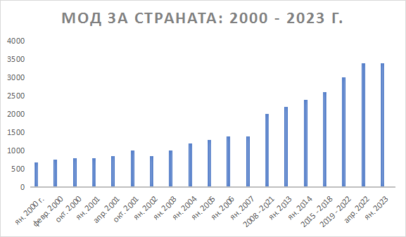 На базата на общата законова логика, че осигуреното лице по правило следва да получава осигурителни обезщетения съобразно приноса си в осигурителната система, е удачно да се направи сравнение в един съвсем изчистен, базов модел относно разликата в осигурителната тежест при евентуално увеличаване на максималния осигурителен доход, респ. какво ще донесе това на осигуреното лице. Примерът е с работник или служител, роден след 1960 г., с брутно месечно трудово възнаграждение от 8000 лв. Подобни размери на възнагражденията не са изолирани случаи, напр. в ИТ-сектора. Удръжките за сметка на този служител за фондовете на държавното обществено осигуряване при максимален осигурителен доход от 3400 лв. в момента възлизат на около 285 лв., а за фонд „Здравно осигуряване“ – около 109 лв. При запазване на същия общ процент на осигурителните вноски и съотношението в разпределението им, но при максимален осигурителен доход от 5000 лв., вноските за фондовете на държавното обществено осигуряване ще са около 419 лв., а за здравни осигуровки – 160 лв.