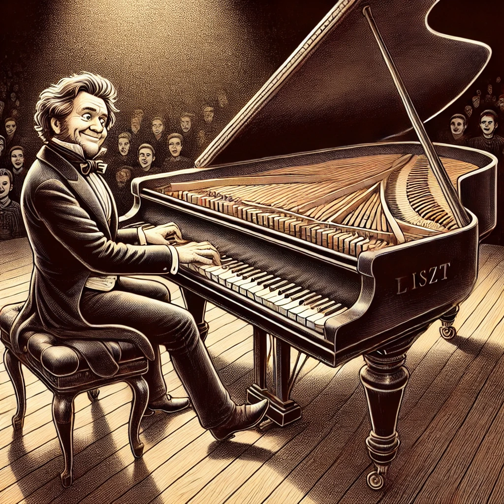 Giữa buổi biểu diễn, Liszt đột ngột ngừng chơi và quay sang khán giả, với nụ cười rạng rỡ, ông nói: “Thưa quý vị, có vẻ như cây đàn này không muốn tôi chơi đúng theo ý mình. Có lẽ nó muốn biểu diễn một bản nhạc của riêng nó!” Câu nói hài hước này lập tức khiến khán phòng bật cười. Liszt tiếp tục “trò chuyện” với cây đàn, giả vờ hỏi nó rằng: “Cậu muốn chơi gì hôm nay? Mozart, Beethoven, hay có lẽ là chính tác phẩm của tôi?”