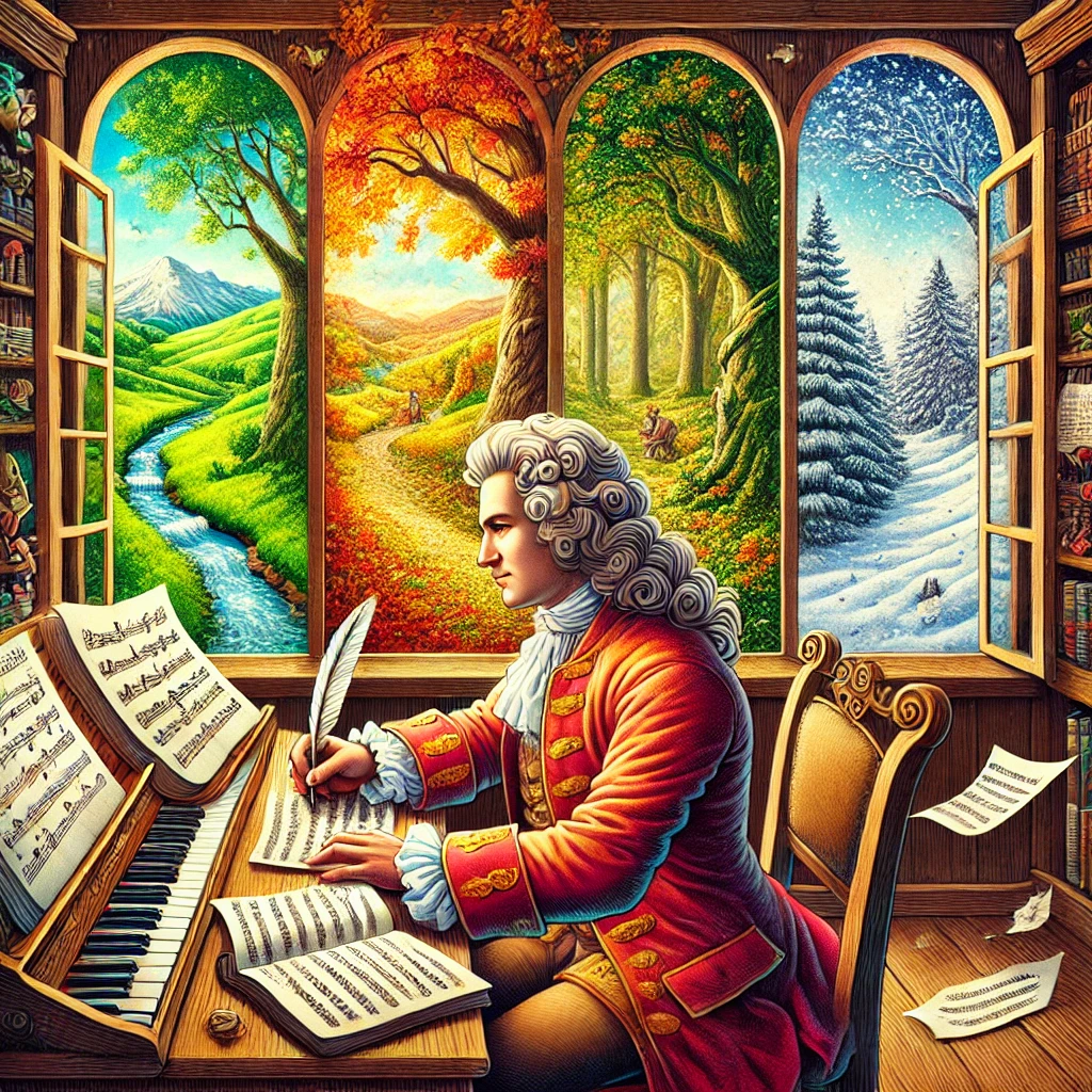 Một ngày nọ, Vivaldi quyết định rời khỏi thành phố Venice sôi động để đến một ngôi làng nhỏ ở vùng nông thôn. Khi đến nơi, ông bị cuốn hút bởi vẻ đẹp của thiên nhiên xung quanh - từ tiếng chim hót vào mùa xuân, đến tiếng nước chảy róc rách vào mùa hạ, tiếng gió lạnh buốt vào mùa thu, và cả sự tĩnh lặng băng giá của mùa đông. Những trải nghiệm này đã gợi lên trong Vivaldi những giai điệu và cảm xúc mà sau này trở thành các chương trong tác phẩm “Bốn Mùa.”