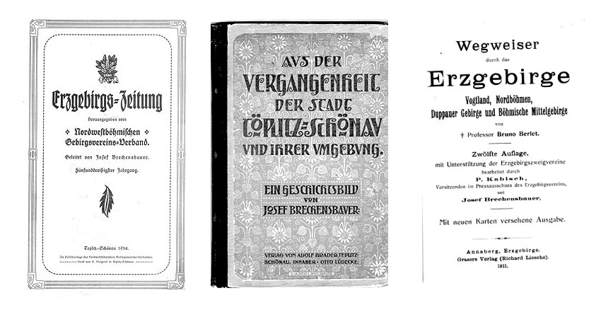 I. Das Kapitel über das Böhmische Mittelgebirge im erfolgreichen "Wegweiser durch das Erzgebirge" von Professor Bruno Berlet (1908, 312 Seiten), II. “Aus der Vergangenheit der Stadt Töplitz-Schönau und ihrer Umgebung – ein Geschichtsbild“ (1912, 95 Seiten) III. das Kapitel über den Erzgebirgs-Kammweg im Band 2 “Das Böhmische Erzgebirge” von Viktor Karell (1968, 261 Seiten) und besonders der: IV. “Erzgebirgs-Kammweg-Führer” im Graserschen Verlag (1932 und andere Auflagen, 64 Seiten).