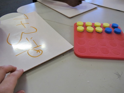 Recording can simply be spots of yellow and blue in two rows of five on scrap paper, or you might design a record sheet. In either case, model the recording you want.