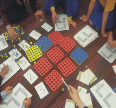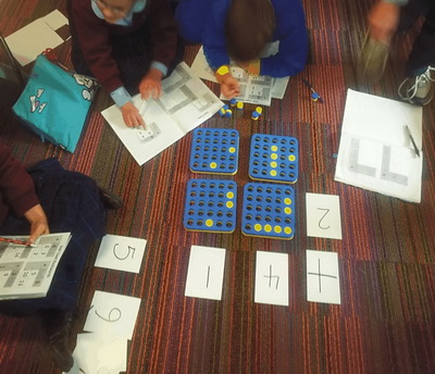- By Session 3, after a few goes at different intersections, some students asked if they could stop using the plugs. They were finding the process of the plugs too slow for their thinking and wanted to move quickly. The students then were given an option of working the sums out and I had some students continue with the plugs and others work without. I found this very affirming as it pointed out the children in my group who are still working through the concrete stage, and which students had moved to the perceptual stage.