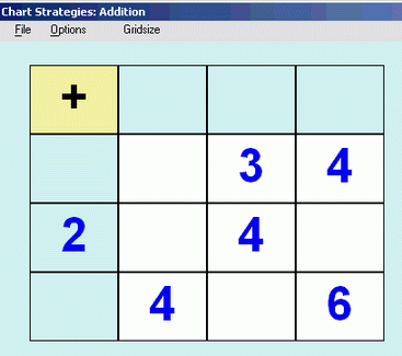 - Introduce backwards questions where only part of Add Town is known and the children have to work out the missing parts. For example, these screens are from the Chart Strategies software which provides a wealth of these problem solving challenges.
